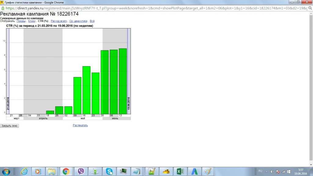Обратите внимание, CTR более 11%, что явный успех.