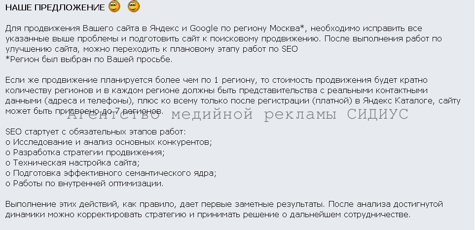 Предложение по поисковому продвижению сайта