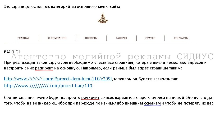 Рекомендации по оптимизации сайта. Это страницы основных категорий из основного меню сайта