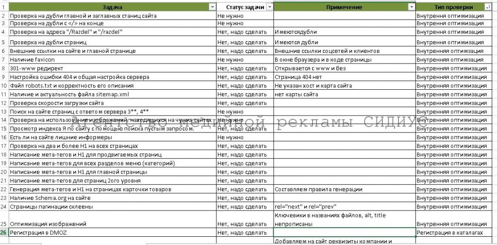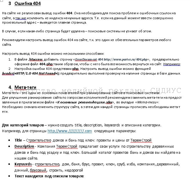 Рекомендации по оптимизации сайта. Список ошибок и мероприятий 2