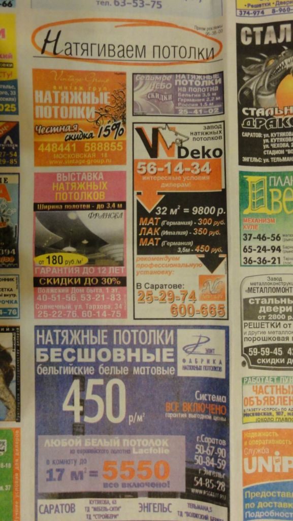 О потолках