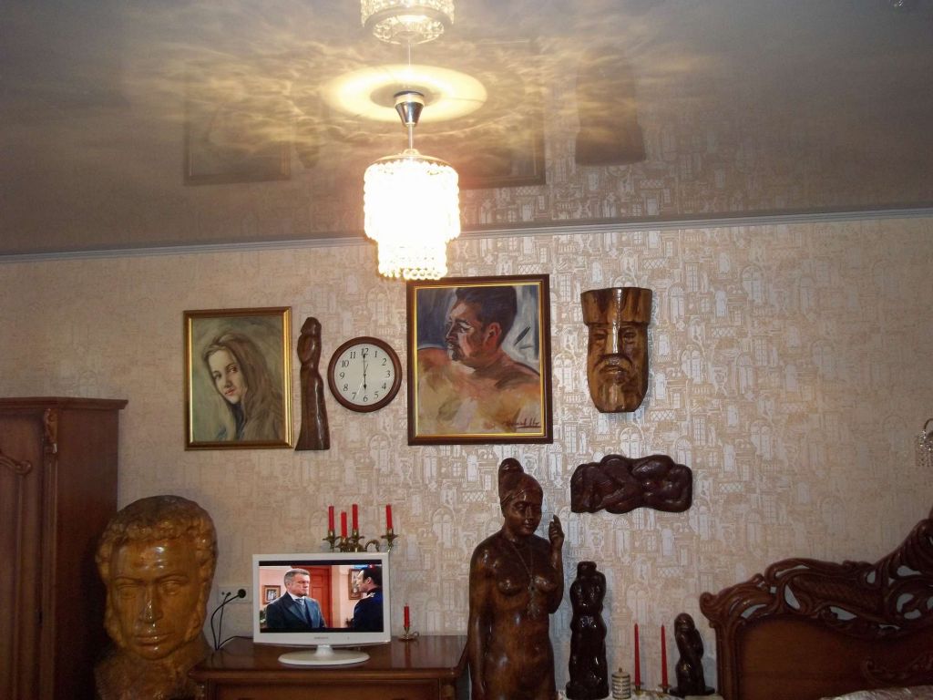 Сегодня был у заказчицы... Женщина около 55 лет. Муж и дочь ушли из жизни один за другим. В память о них она решила сделать ремонт и весь интерьер украсить произведениями мужа, который был скульптором. Наши потолки теряются на фоне остального...
