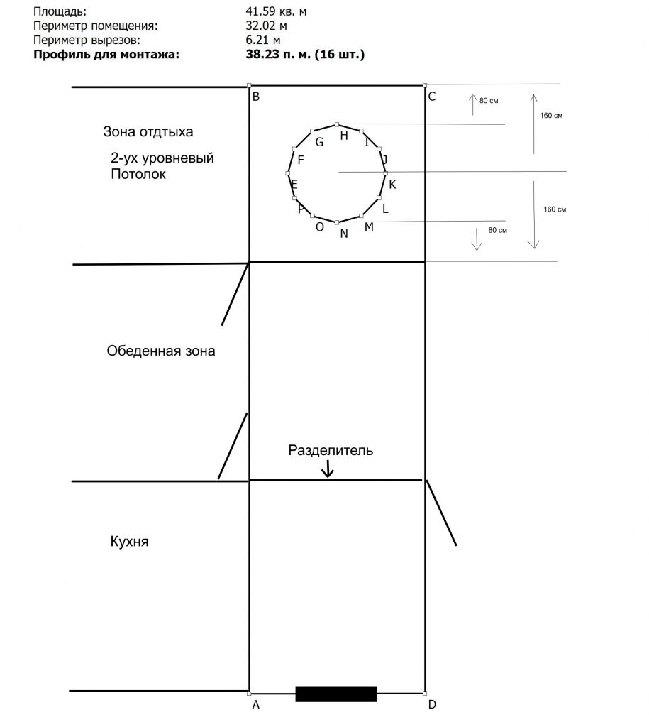 Вытянутый потолок с 3-мя зонами